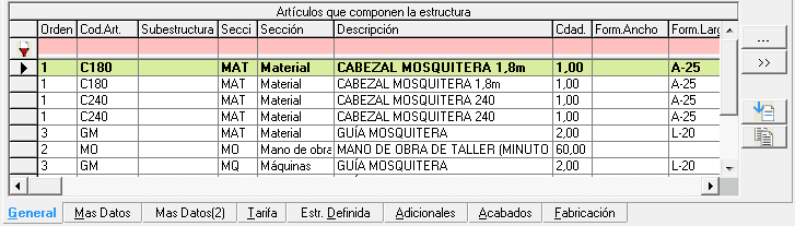 Hemos mejorado la pantalla de definición de estructuras, para facilitar la configuración de despieces y escandallos avanzados: