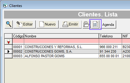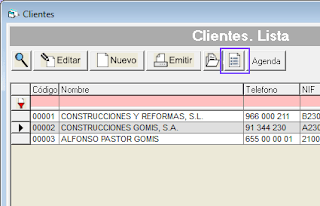 Por ejemplo, si en la lista de clientes seleccionamos un cliente y pulsamos el botón Consultas rápidas, accederemos a las consultas con el filtro de cliente seleccionado.