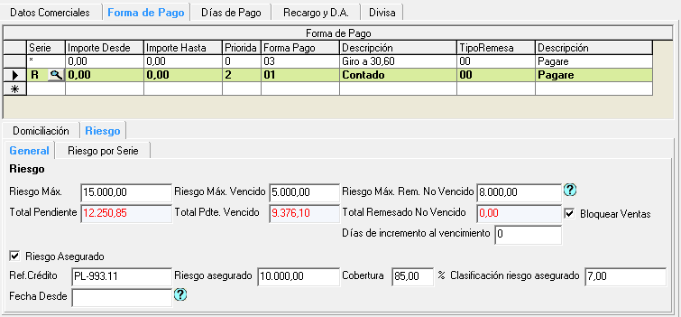 - Para cada cliente podemos indicar una fecha inicial desde la que empieza a computar el riesgo