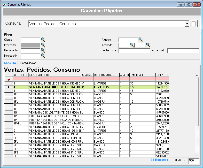 Al hacer click sobre el botón, accedemos a la pantalla de Consultas rápidas con el elemento seleccionado en el filtro correspondiente.