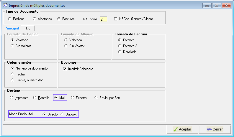 Es posible enviar de forma masiva varios documentos de ventas por email a nuestros clientes.