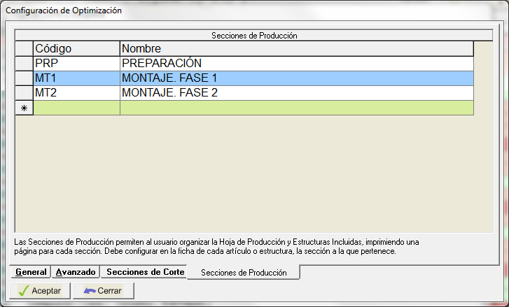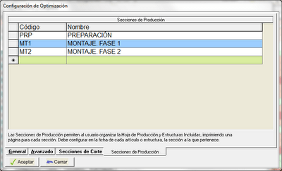 Para reflejar esta realidad hemos añadido el mantenimiento de Secciones de Producción.