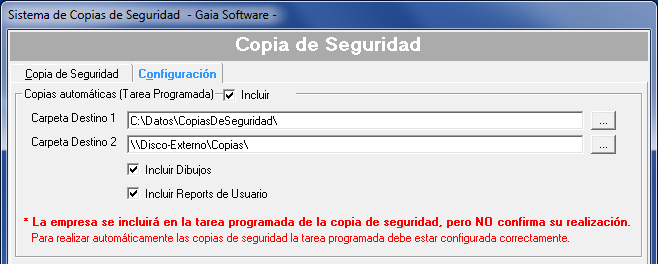 - Carpeta Destino 2: Le permite indicar una segunda ubicación para tener 2 copias simultáneas en ubicaciones diferentes