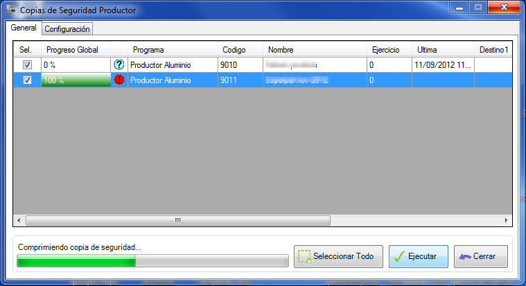 Es necesario configurar en la aplicación Productor la copia de seguridad de cada una de las empresas que desee incluir en las copias automáticas.