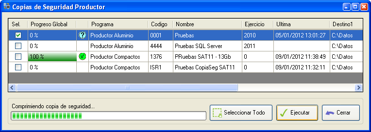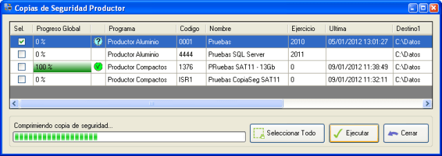 La aplicación gaCopiasDeSeguridad permite la realización automática de copias de seguridad de las bases de datos de la aplicación Productor.