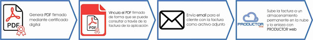 Lo más práctico y cómodo tanto para nosotros como emisores como para nuestro cliente es emitir la factura en formato PDF, firmado electrónicamente con el certificado digital de la empresa que la emite.
