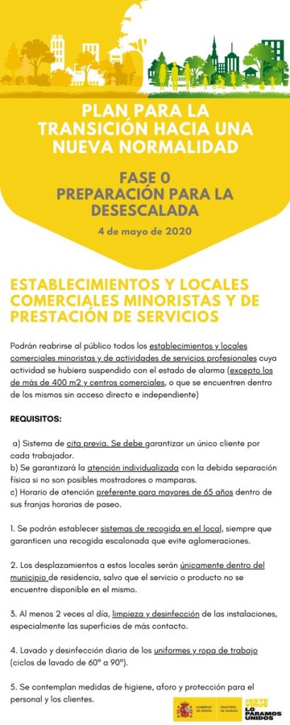 La desescalada se plantea como una transición a la nueva normalidad, aunque con nuevos comportamientos por parte de las personas y las empresas (como la autoprotección y separación física).