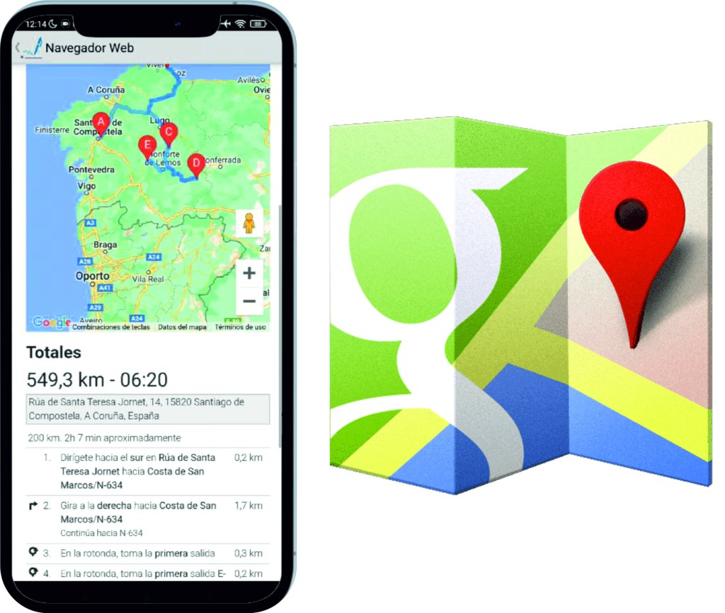 Es otra característica nueva que se ha incorporado, a partir del reparto en la pestaña de clientes, además de consultar las visitas que tiene que hacer el repartidor incorporamos calcular ruta, que hace una integración con la directions API de google maps y nos muestra la ruta óptima para visitar a todos esos clientes asignados, km y tiempo de conducción.