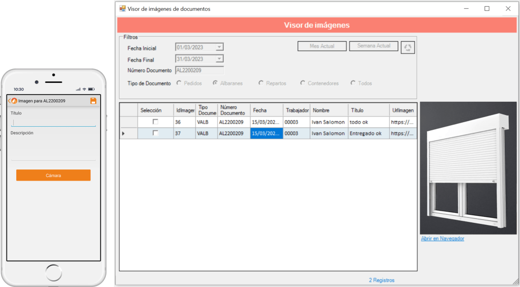 Otra función necesaria para evitar reclamaciones es la imagen de la entrega para garantizar el estado en el que se le ha entregado el producto, esta imagen después en la sincronización se vincula al albarán y podrá ser consultada desde la oficina en el programa PRODUCTOR.