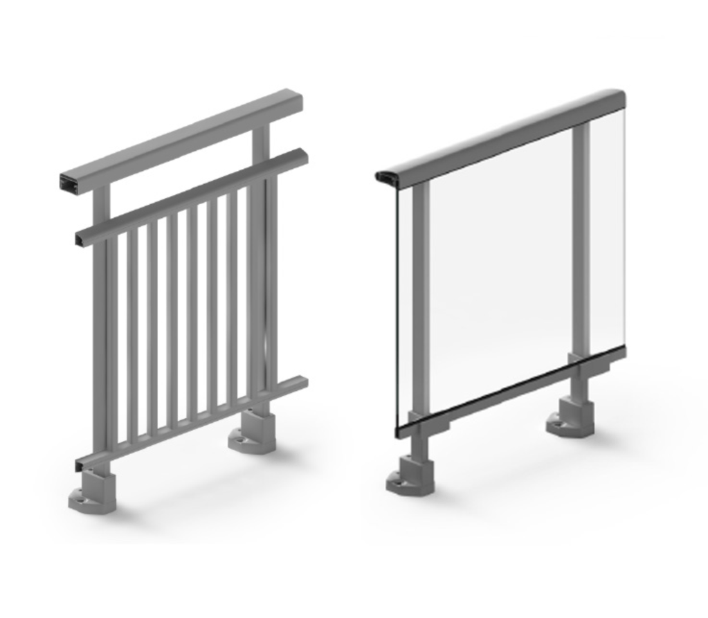 - Sistema de barandilla tradicional con frente de barrotillo o de vidrio. Posibilidad de anclaje a forjado o a canto de forjado.