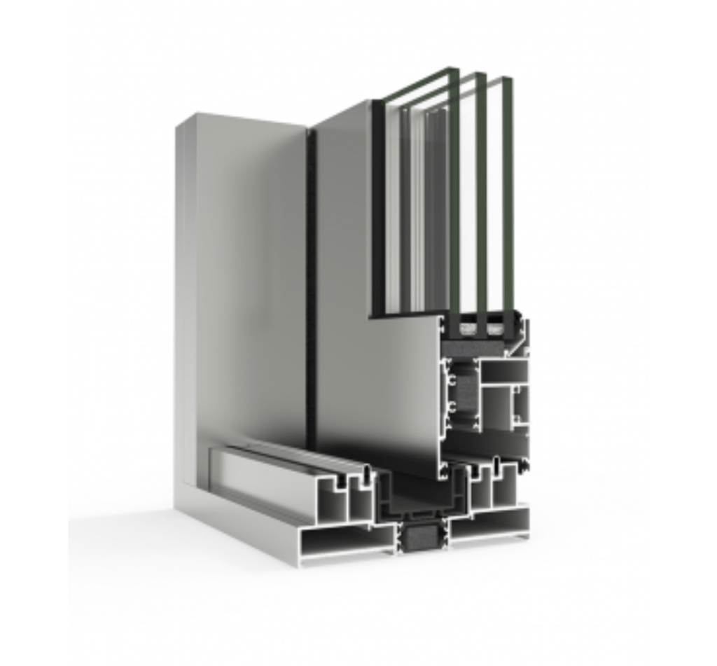 - Solución ideal para cerrar grandes vanos, ofreciendo excelentes prestaciones térmicas (Uw desde 0.9 W/m²K) y acústicas (Rw hasta 43 dB) acompañadas de un cuidado diseño con estética recta en hoja y junquillo. Incorpora un sistema de herraje que eleva ligeramente la hoja al accionar la manilla, facilitando su desplazamiento durante la apertura y cierre, incluso en hojas de grandes dimensiones y pesos. Posibilidad de nudo central reducido de 50 mm