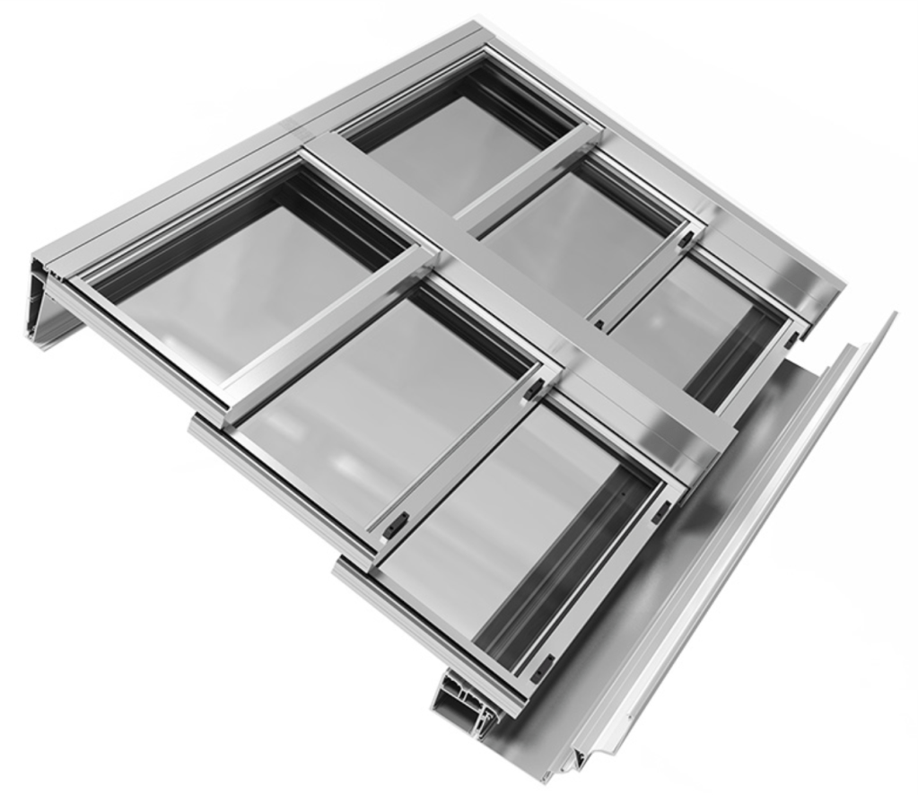 - Sistema de cerramiento corredero y automático que permite abrir y cerrar una superficie techada, permitiendo disfrutar del aire libre o de una estancia cubierta según las necesidades. Esta solución posibilita una apertura máxima del hueco del 66 %, presentando además un destacado confort térmico y acústico gracias a su capacidad de acristalamiento de 24 mm y a la instalación de vidrios con control solar. El Techo Móvil de CORTIZO dispone de una serie de perfiles complementarios con los que se configura la recogida de aguas y el drenaje del cerramiento, garantizando así la máxima estanqueidad del sistema.